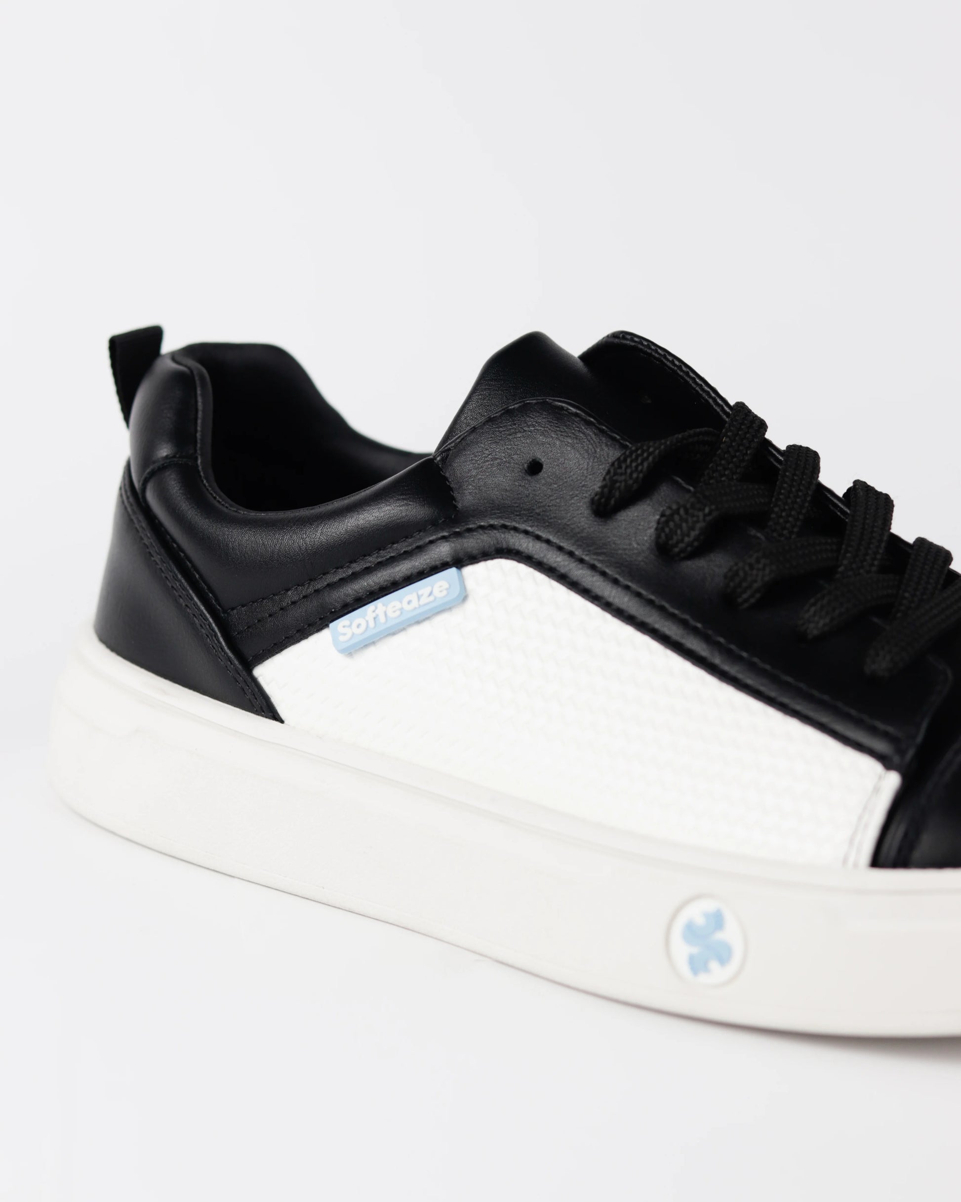 Check out our black and white sneakers with a premium white sole! These shoes are perfect for any occasion, offering a bold yet versatile look. The classic black and white combo is always in style, and the premium sole adds a touch of luxury.