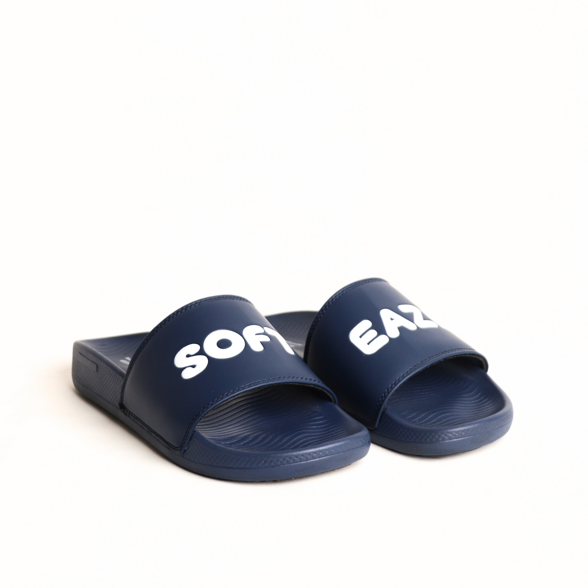 Step into effortless comfort with our Soft Eaze Classic Azure slides. Crafted from ultra-soft PU, these lightweight, navy blue essentials feature our signature "SOFT EAZE" branding.