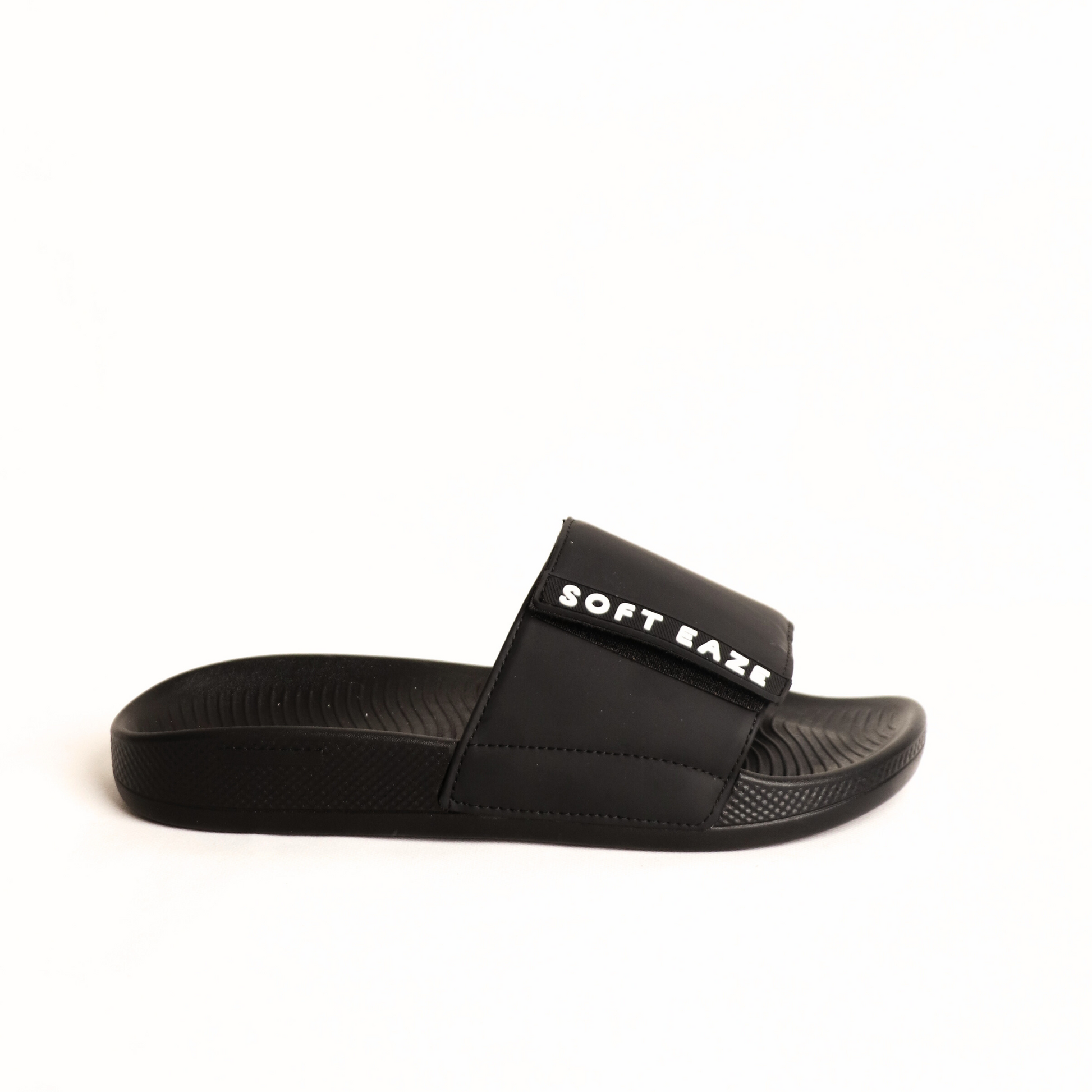 Embrace understated cool with the Soft Eaze Midnight Core slides. This all-black design offers sleek sophistication and timeless versatility, perfect for any casual occasion.